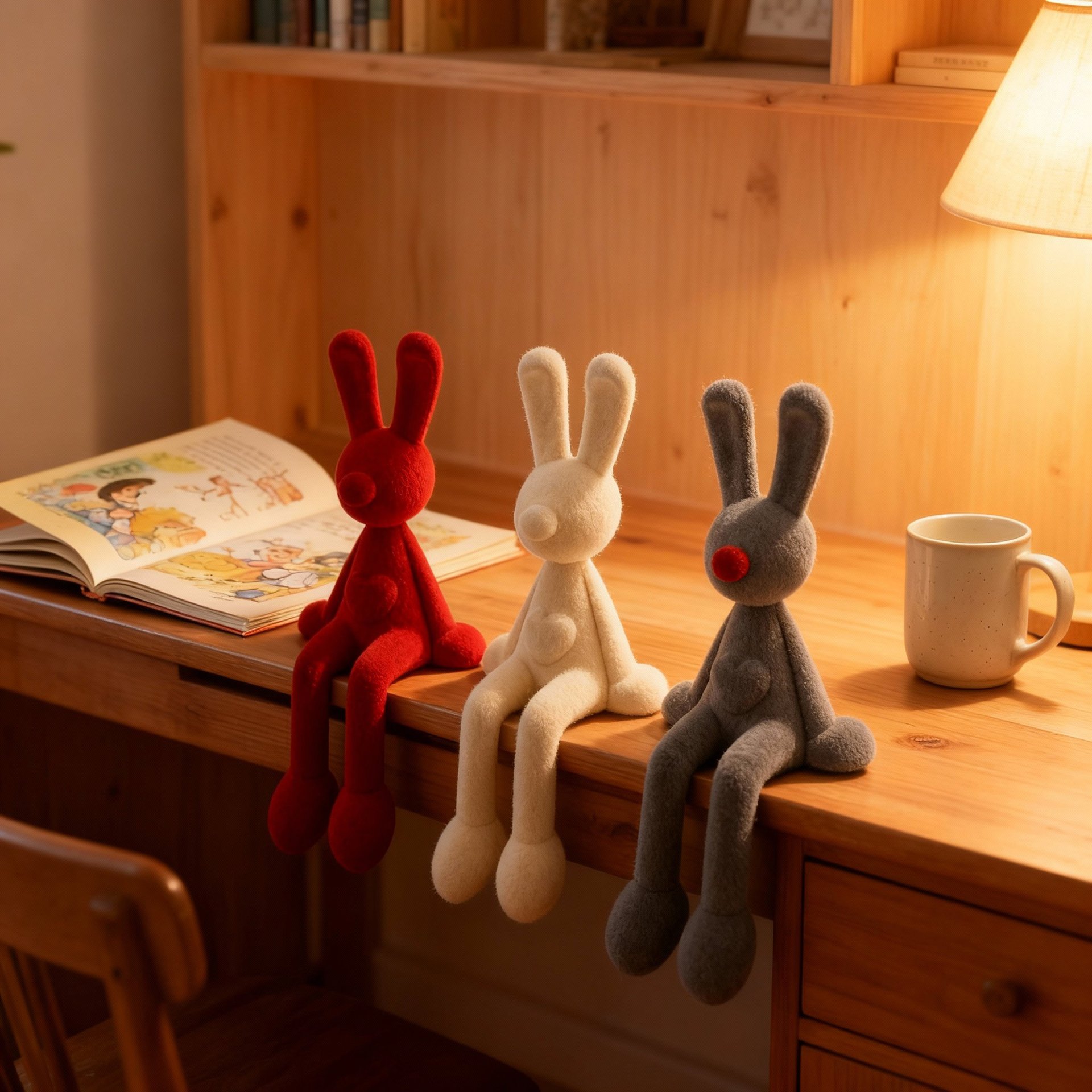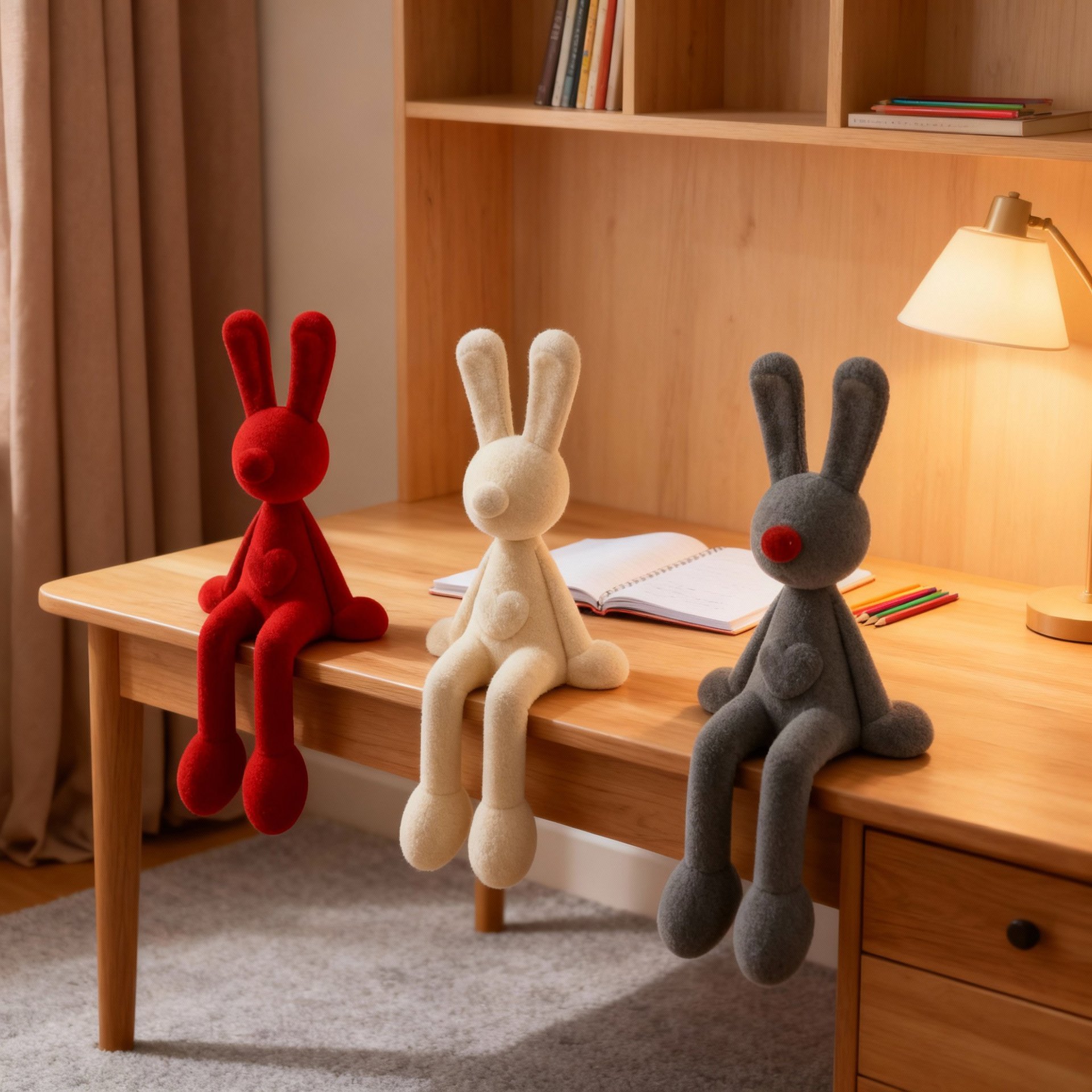 Colors: [Flocked] Bubble-Blowing Rabbit – Red, [Flocked] Bubble-Blowing Rabbit – Beige, [Flocked] Bubble-Blowing Rabbit – Gray